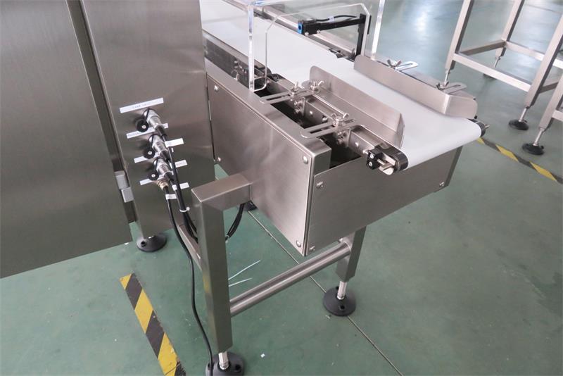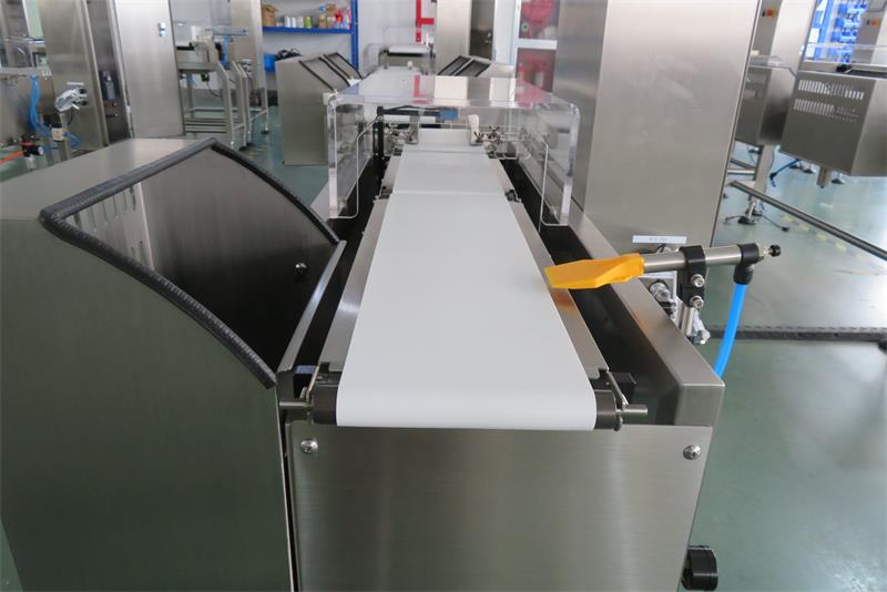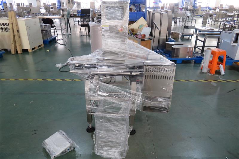 這款配了輸送帶的檢重秤,該廠家要求的是需要推板式來檢測重量不合格的產品自動進行剔除,他這個是一個橢圓形輸送帶,其中搭配兩個檢重秤。速度可達一分鐘60個(支持非標),范圍是5-3000g,精度在±0.5g。他的產品重量基本都在60-80g。我司工廠技術師傅用了大概8天時間調試好、裝配好后,在今天完工發貨。